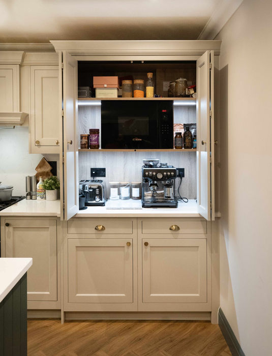 One of our most exquisite in-frame options, this kitchen design showcases our dedication to delivering quintessentially British style. The client expressed their desire for a kitchen that was truly unique, and we delivered by pairing our signature in-frame style with the stunning Copse Green colour, bringing out its true character and charm.